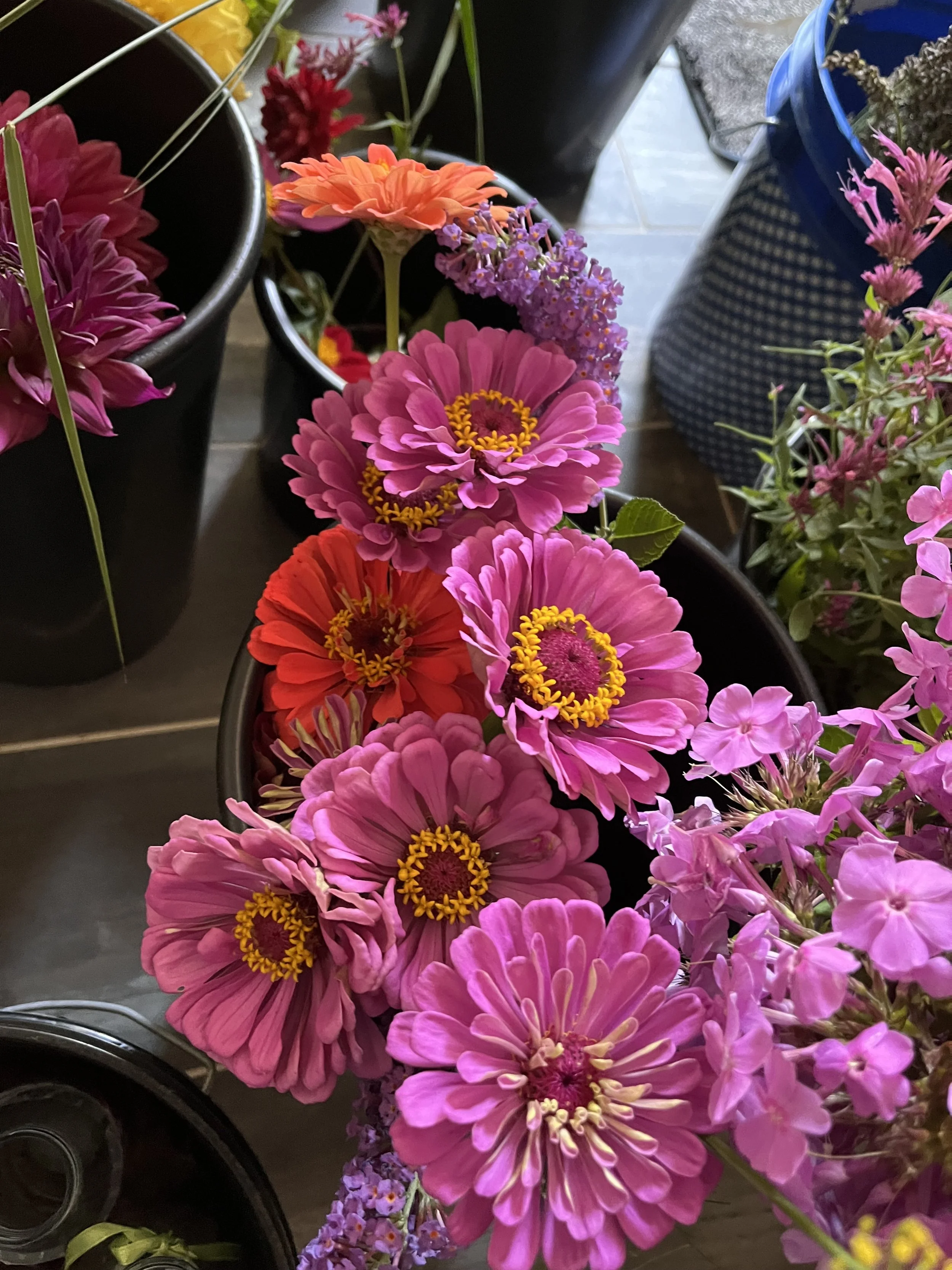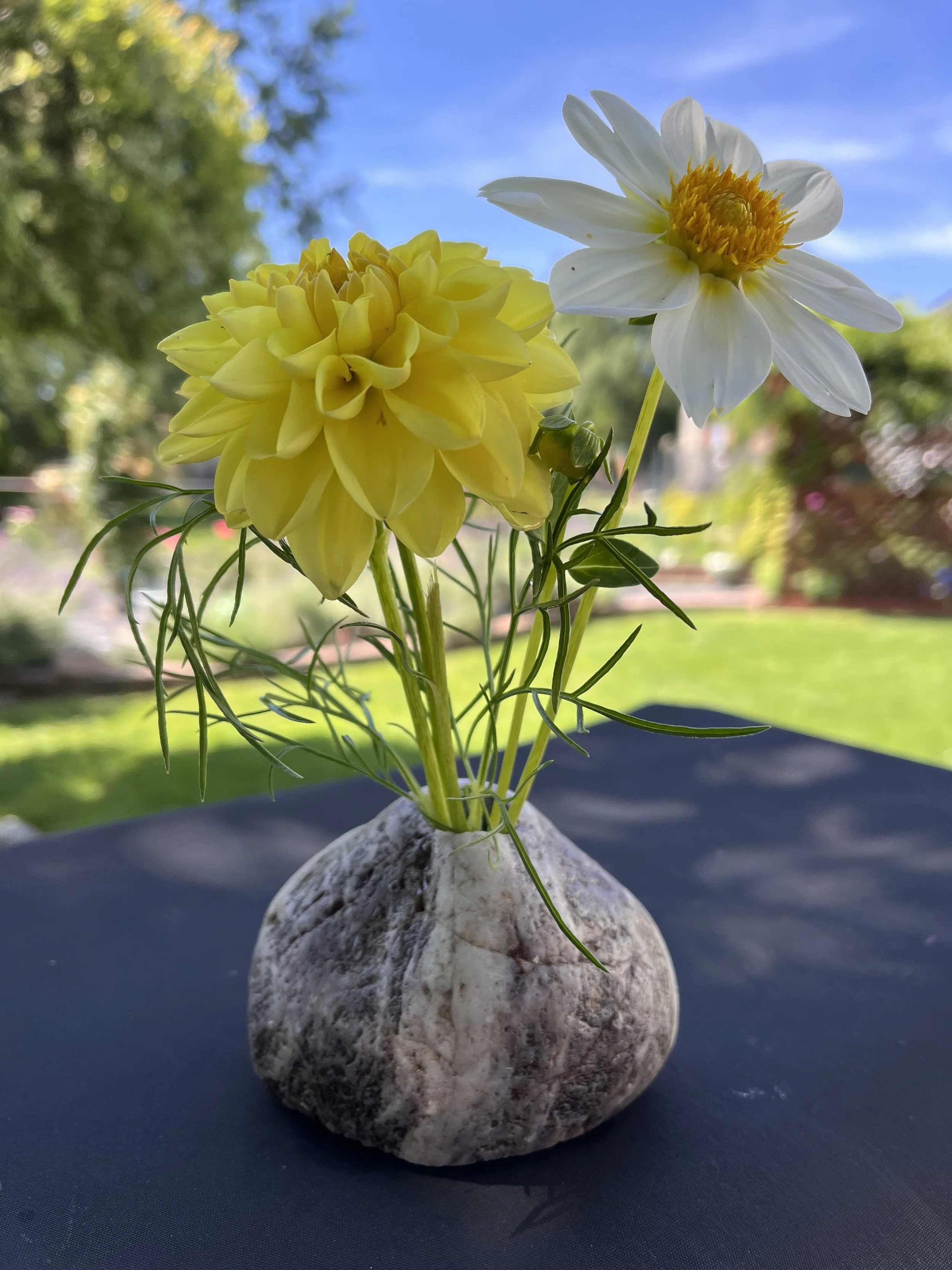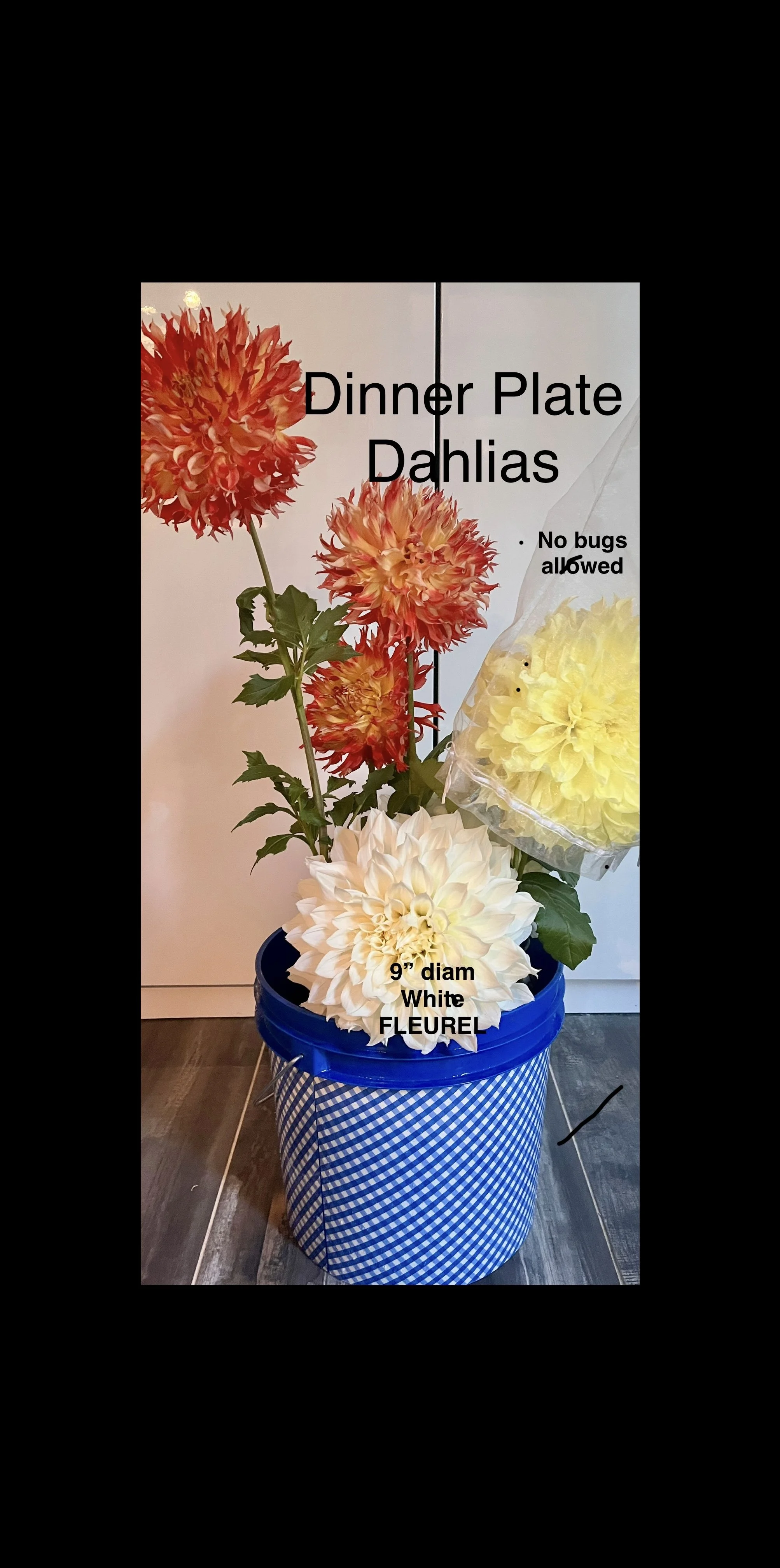 DINNER PLATE DAHLIAS RESTING 4-5 HOURS IN TREATED WATER AFTER CUTTING
